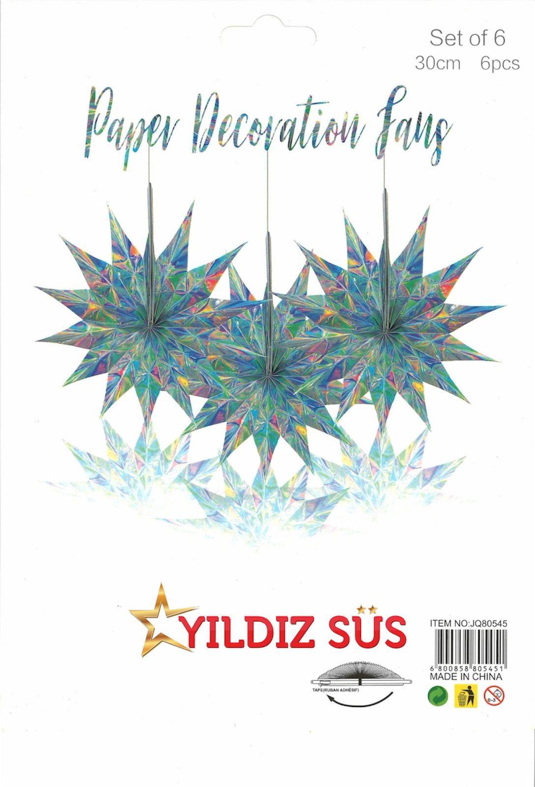 SNG-02-GÜMÜŞ/6 LI YILDIZ SÜS MET 30 CM
