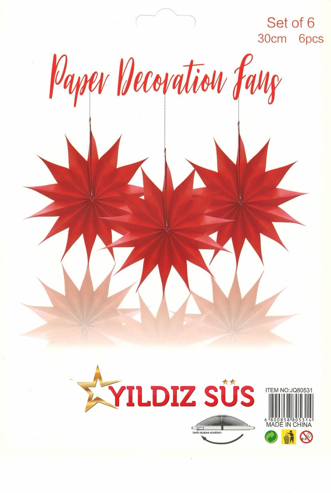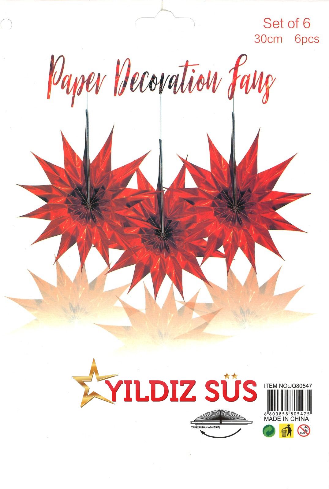 SNG-03-KIRMIZI/6 LI KAĞIT YILDIZ DKR 30 CM